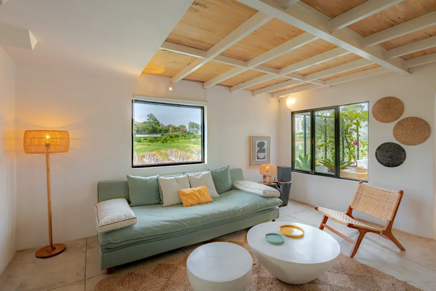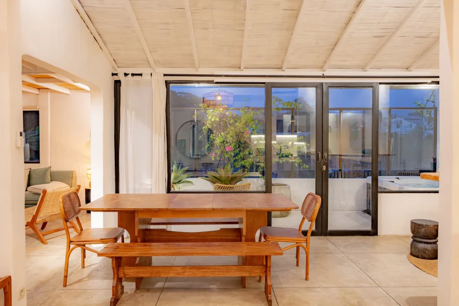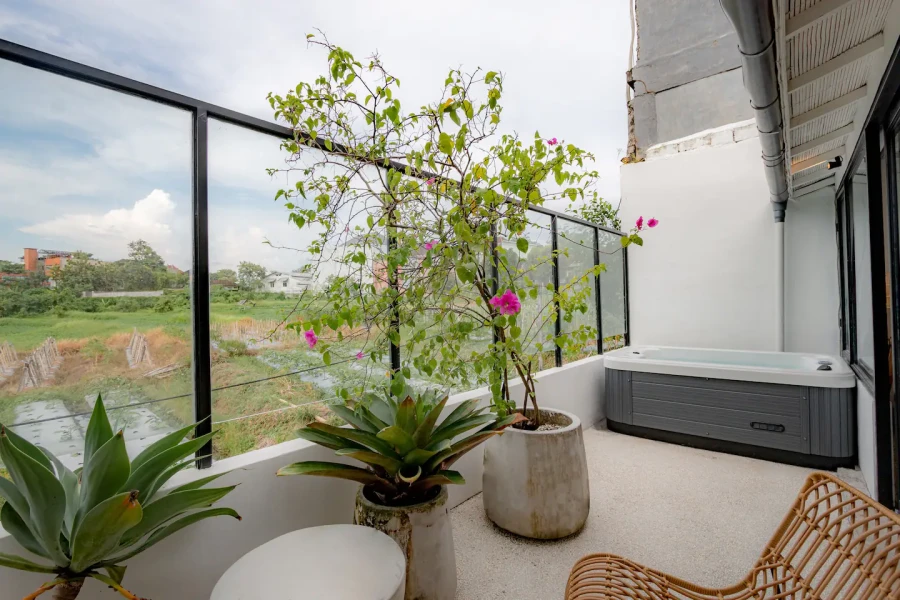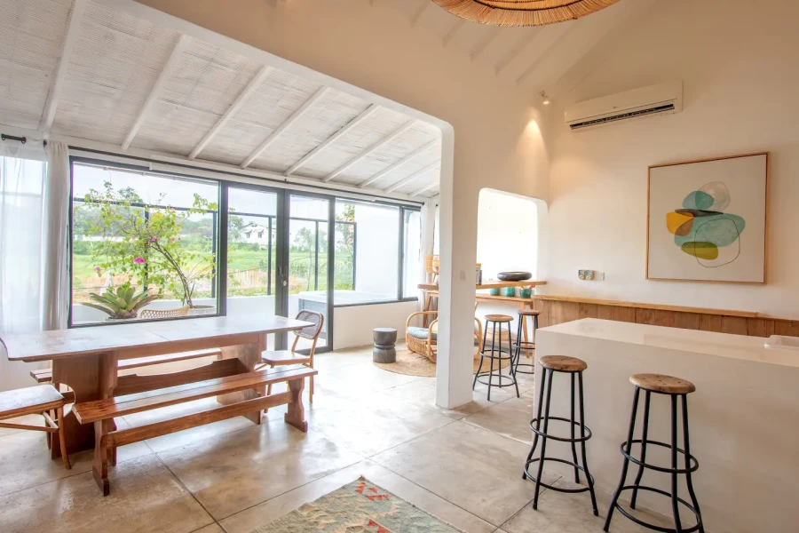 About Rumah Sawah As you step into Rumah Sawah, a tranquil and stylish private house in Kerobokan, you're greeted by a serene atmosphere that sets the tone for a relaxing retreat. This beautifully designed 3-bedroom house, named "Rumah Sawah" in Bahasa Indonesia, offers a comfortable sanctuary for up to six people. Instead of a traditional pool, Rumah Sawah features a jacuzzi, providing a unique touch to your stay. The highlight of this designer hideaway is the picturesque view of the adjacent rice fields, creating a soothing backdrop for your Bali escape. Whether you're a couple seeking a romantic getaway or a small group of friends looking for a stylish haven, Rumah Sawah offers the perfect blend of comfort and aesthetics. The Outdoor Areas The thoughtful combination of traditional wooden structure and modern design creates a unique blend of charm and sophistication. As you step into the property, the captivating view of rice fields unfolds, providing a picturesque backdrop that perfectly complements the tranquil ambiance. This carefully crafted space is designed for relaxation, making it an ideal hideaway for a couple or a small group of friends. Whether you're unwinding in the stylish interiors or enjoying the jacuzzi, Rumah Sawah promises a delightful and memorable retreat. The Indoor Areas Step into the heart of authentic Balinese design blended seamlessly with modern vibes in the interior of this charming house. The living and dining space exudes both style and warmth, offering a comfortable retreat. Large windows and doors provide an option to enjoy air-conditioned comfort or the natural breeze. The house features a delightful Jacuzzi, adding an extra touch of luxury to your stay. The fully equipped kitchen with modern amenities and a spacious worktop invites culinary enthusiasts. While the option to cook is available, we highly recommend indulging in the services of our private chef, allowing you to fully immerse yourself in the holiday experience. The Bedrooms Discover the distinctive charm of each of the three bedrooms in this house, where individual character shines through. Air conditioning ensures your comfort, while each room is equipped with a wardrobe and a convenient working desk, catering to the lifestyle of a modern nomad. High-speed internet is also available, providing seamless connectivity for your convenience. Staff and Services Our dedicated and super-friendly staff is committed to providing excellent service and ensuring your stay is both comfortable and luxurious. Daily housekeeping and cleaning services are included in the price, allowing you to relax and fully enjoy the beauty of this island getaway. We're ready to assist with arrangements such as airport pick-up, motorcycle or car rental, baby-sitter services, and pre-arrival grocery shopping. For your convenience, a local phone will be provided, allowing you to reach us effortlessly. Any additional bookings or arrangements you may need can be easily coordinated through our team. Your comfort and satisfaction are our top priorities.