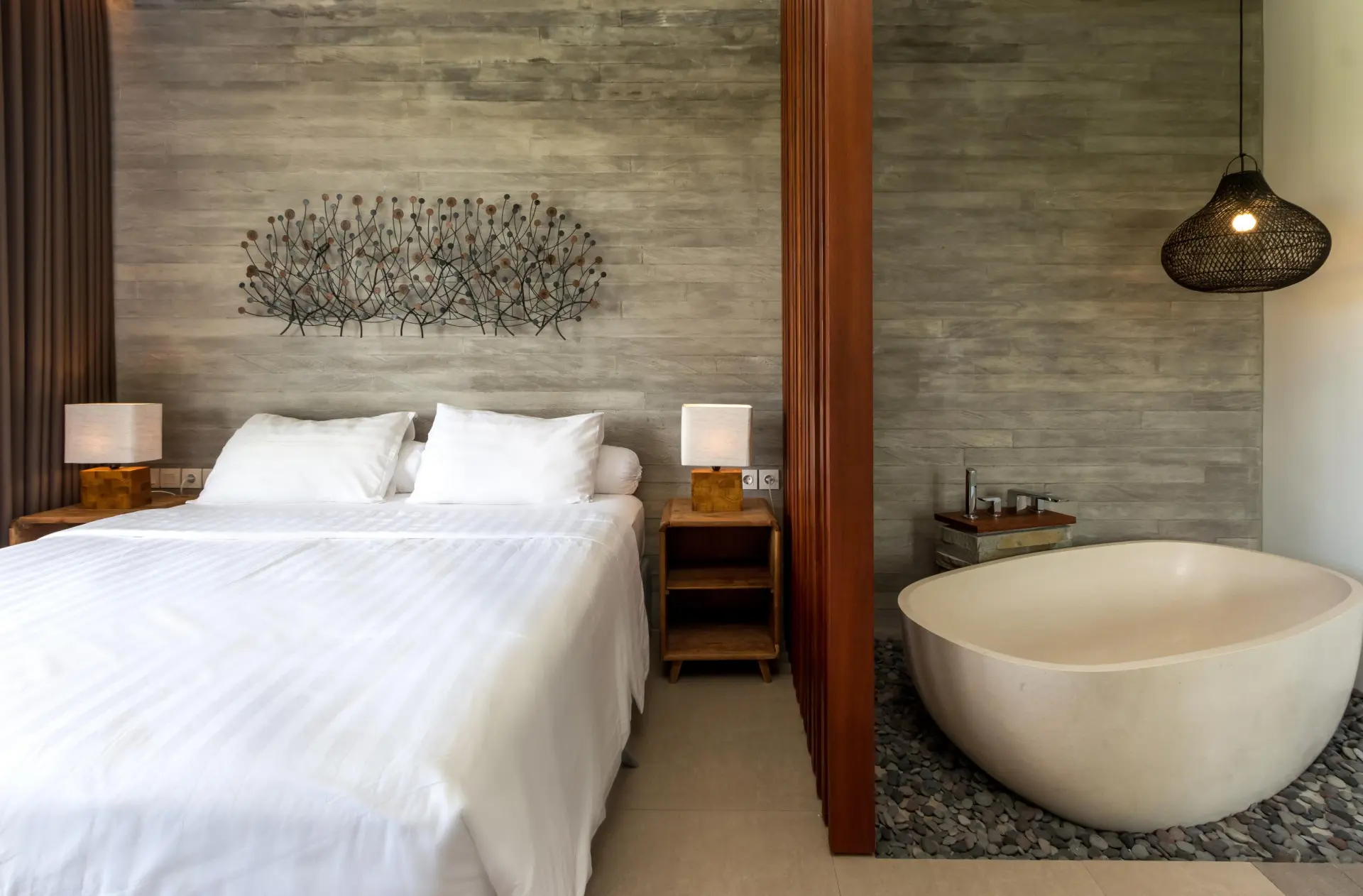 About Swan Villa R In the heart of Seminyak, on bustling Petitenget street, Swan Villa R is a beautiful, tropical hideaway in the centre of town. Just walking distance from restaurants, shops, cafes and bars, you can explore the town on foot and visit some of the best local businesses. Featuring 2 comfortable, bright bedrooms, open-air living areas, tropical gardens and a private pool, the chic modern home has everything you need for an unforgettable stay. For a family or group of friends, Swan Villa R is a stunning Bali accommodation. The Outdoor Areas The gardens of Swan Villa R are luscious, spacious and sunny with a wooden terrace, glistening private pool, poolside bale and reclining sunbeds. A beautiful setting for reclining in the sun and spending quality time with your friends and family, you can have a peaceful island day in total privacy. Dip into the cool waters, supervise the kids in the pool from the shady living space and catch sunset views from the second floor balcony. Swan Villa R will quickly feel like your own island home away from home with everything you need to bask in the beauty of Bali. The Indoor Areas Swan Villa R has spacious, open living areas filled with home comforts and amenities to make your stay all the more relaxing and comfortable. You can lounge on the plush couches with your loved ones, prepare tasty homemade meals from fresh local ingredients, and dine together around the spacious table in a cool tropical breeze. With a modern, chic style and easy access to the gardens and pool, you will have your own piece of paradise. The Bedrooms Both of the bedrooms are bright and plush with deluxe beds, a clean modern decor and ensuite bathrooms. A great space to rest and unwind after exploring the island, you can recline on the beds, bask in cool air-conditioning, and enjoy garden views from the comfort of the bed. The king size bedroom is on the second floor with a sumptuous bathtub and breezy balcony, while the twin bedroom is on the ground floor with access to the pool terrace and small outside seating area. Each guest will have their own private retreat to escape and rest. Staff and Services Along with the 5-star accommodation, Swan Villa R also has a group of friendly, local staff including housekeeping, security and gardeners. Keeping the villa in amazing condition throughout your stay, and assisting in organising additional details for your stay, the team are on hand to ensure you have the most comfortable and memorable getaway. Arrange in-villa massages, private chefs, excursions and more with the staff.