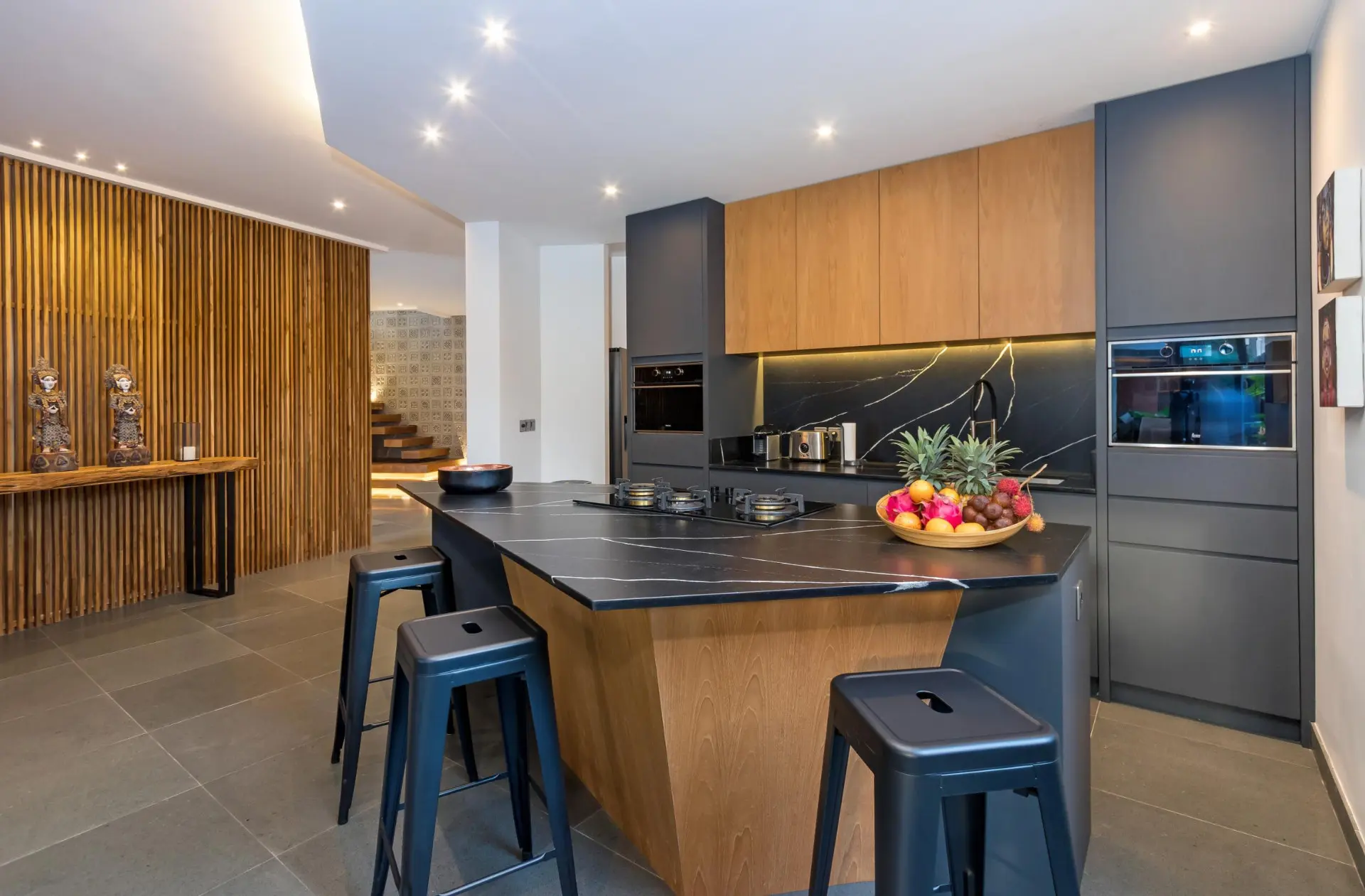 About Villa Castil di Udara Located on the outskirts of Canggu in a quiet area away from the crowds, Villa Castil di Udara is the perfect place to spend a relaxing and comfortable Bali getaway. Modern and luxurious, you will quickly feel at home in the beautiful accommodation that boasts 4 sprawling ensuite bedrooms, lush green gardens, spacious living areas and a glistening private swimming pool. Whether you’re travelling with friends or family, Villa Castil di Udara is a stunning setting for a memorable Bali holiday. Villa Castil di Udara is economically supported by solar panels to produce its electricity and hot water. You can enjoy a steaming evening shower without any environmental worry. Bedrooms Each of the 4 bedrooms in Villa Castil di Udara feature a clean modern style with wooden decor and traditional Balinese touches. All the guests will have their own private space to relax and unwind after a day in the sun. Bask in the cool air-conditioning, lay back on the plush king-size beds and enjoy a tropical breeze flowing through the large sliding doors overlooking the lush gardens. The ensuite bathrooms are elegant and chic with open-air rain showers, tropical greenery and lavish deep bathtubs to soak your cares away. The wooden decor perfectly reflects the natural surroundings. For a group of friends, or family with older children, Villa Castil di Udara provides an idyllic and picturesque home away from home. Outdoor Areas Villa Castil di Udara has tropical and lush gardens with towering palm trees, a green lawn, glistening private swimming pool and reclining sunbeds where you can spend summer days soaking in the sun. Ideal for the days where you want to laze around the villa, you can relax in the famous Bali heat, dipping into the pool to cool off and enjoying quality time with your loved ones. Villa Castil di Udara has an open living area overlooking the pool where you can enjoy a cool breeze and supervise the kids playing in the pool. Sip cocktails and catch the end of a magical colourful sunset, Villa Castil di Udara is a beautiful place to unwind. Indoor Areas The interior living areas of Villa Castil di Udara are ultra-modern, spacious and comfortably furnished allowing you to quickly feel at home. Enjoy watching movies on the lounging couches, prepare delicious homemade meals in the fully equipped kitchen and dine together with your loved ones around the grand dining table. There is a second cosy living space on the second floor with a unique style couch, impressive artworks and snug bean bags. Looking out over views of the gardens with air-conditioning, it is the ideal spot to tuck the kids away with a movie when the adults want to enjoy an evening sip and delicious fancy dinner. The entire first floor has easy indoor to outdoor access through sprawling glass sliding doors. You can enjoy everything this luxurious tropical island home has to offer, whilst feeling comfortable. Staff and Services Villa Castil di Udara has a friendly team of staff who will be available from the moment of your arrival to ensure you have a comfortable and relaxing stay. Offering assistance in organising additional details for your stay including airport transfers, excursions, babysitters and private chefs, you can have everything you need upon request. Our Concierge team will remain on hand to answer any questions or queries you may have from the moment of your booking until check out.