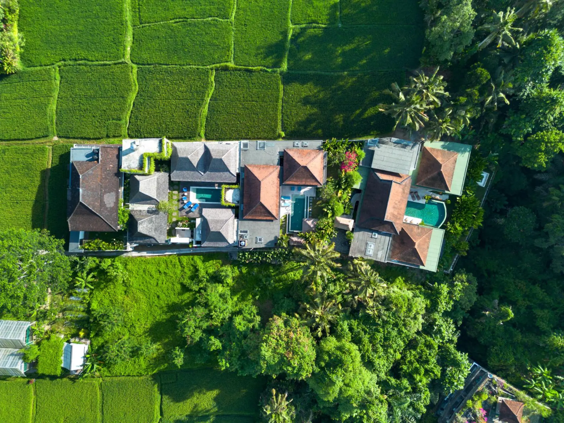 About Villa Liang Concealed deep within the lush greenery of Ubud, is a place that will transform you into a magical wonderland. Villa Liang is an oasis of calm and peace. It is a 3-bedroom rental home where you will love to spend a relaxing holiday with your family. “Liang” in the Balinese language means happy. The villa and its surrounding area will certainly make you feel happy. You will sense its laid-back vibe and serene ambiance immediately on arrival. The villa is surrounded by lush greenery and yet, it is just a 10-minute walk from the main road of Ubud. You will be able to drive down to the town center in only 5 minutes. A wonderful location and beautiful setting make Villa Liang truly special. You will find plenty of modern amenities in the home as well. There is a swimming pool, living and dining areas, and a well-equipped kitchen with many modern appliances. The villa offers daily housekeeping services. Airport transfer can also be arranged. Enjoy your stay in this lovely villa. It feels like a nature reserve where you also have resort-quality amenities. Bedrooms Villa Liang has 3 bedrooms for 6 guests, all named after local birds. The Kokokan bedroom has a double bed. Named after a white heron, it has handmade teak furniture, a spacious wardrobe, a writing desk, and a day bed. It is the largest bedroom in the house. The Murai bedroom is named after the beautiful magpie, while the Kutilang bedroom is named after a small songbird. All three have a similar décor, with the only difference in size. The beds have high-quality mattresses and extra pillows for sleeping comfort. Large glass sliding doors lead to the garden and pool. Kokokan additionally has a seating area just outside on the terrace. All three bedrooms have ensuite bathrooms. Murai and Kutilang have showers. Kokokan has a bathtub. Outdoor Areas The villa stands at the edge of a thick forest with rice fields on the other side. On entering this luxury property, you will see banana plantations, coconut trees, and many other tall trees. You can wander and experience the feeling of staying in nature’s paradise. At the center is a swimming pool with a shallow end where young children can splash around and have fun. Meanwhile, the adults can wade into its deeper sections for a refreshing swim in its cool water. You will find several loungers on the poolside. There is also a shaded gazebo with a day bed and cushions. On one side of the pool, you will find a lawn with a garden footpath connecting the various areas, including an outdoor shower. Indoor Areas Villa Liang is a new home and naturally, everything is in top condition. You will find natural finishes inside, which makes the house blend perfectly with the surrounding nature. The use of rock, marble, and timber gives the space an artsy feel. The lounging/dining area is huge. It is an open-concept room, so you will find all the common areas close. A large L-shaped sofa seats all six guests easily. The rustic dining table will also seat everyone. Just behind this is the modern kitchen that has a refrigerator, ice maker, oven, kettle, and many other appliances. Sculptures and paintings decorate the space. Staff and Services You can book any of the three bedrooms as a Bed and Breakfast or the entire villa for a private holiday with family. Villa Liang is a selfcontained property where you will find everything you need. Each room has a fridge and a tea/coffee maker. The bedrooms are airconditioned. Daily housekeeping is offered at the house. You can ask for a chef and a masseur.