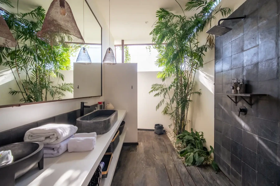 About Villa Lileo Immerse yourself in contemporary opulence within this expansive and luminous 4-bedroom villa, conveniently situated just a short drive away from the vibrant heart of Berawa in Canggu. Designed to accommodate large groups of family and friends, it offers an ideal setting to relish the finest experiences Bali has to offer. The villa is also baby-friendly, with amenities available for hire including a wooden baby cot with mosquito net, a baby chair, a babysitter, and a pool fence. The Outdoor Areas Enter this exquisite villa, where lush greenery embraces a predominantly white structure. The open concept of the dining and living areas creates an inviting space, perfect for both relaxation and entertainment. Seamlessly connected to the well-manicured garden, the 15-meter-long private pool adds a touch of tropical paradise to your experience. The Indoor Areas Step into the villa, and you'll discover a fully equipped kitchen with all modern conveniences, featuring a spacious fridge freezer. While you have the option to use the kitchen, we highly recommend letting our private chef handle the cooking, allowing you to fully savor your holiday. At an extra cost, she'll craft delectable daily breakfasts, lunches, and/or dinners. If you're keen on learning, she's also happy to host an Indonesian cooking masterclass, perfect for showcasing your new culinary skills back home. The Bedrooms Discover the four exquisite bedrooms, each offering an equally amazing sleeping experience. Enjoy the comfort of air-conditioning, plush bedding, a spacious walk-in closet, and a full bathroom for complete relaxation. Every room boasts a unique view of the private pool and the lush tropical garden, adding an extra layer of wonder to your stay. Staff and Services Our incredibly friendly and attentive villa staff are dedicated to ensuring your utmost comfort and satisfaction. They take great pride in providing a luxurious experience throughout your stay. Daily housekeeping and cleaning services are naturally included in the price, allowing you to effortlessly unwind, relax, and fully appreciate the beauty of this stunning island.