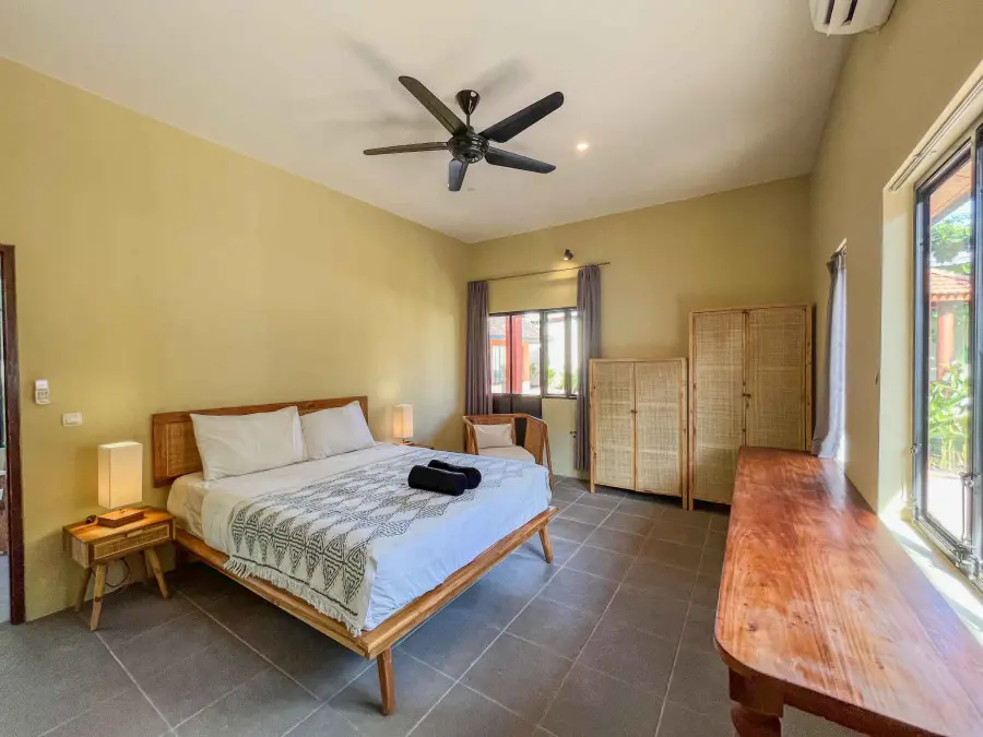 About Villa Mimpiku Indulge in a tranquil retreat where connectivity meets serenity. Located within a short drive from the neighboring areas of Canggu, Seminyak, and Kuta, this peaceful gateway offers easy access to an array of shops and restaurants. The villa, featuring 3 bedrooms with ensuite bathrooms, a private swimming pool, and a lush garden, provides a delightful escape. Beyond its welcoming ambiance of a 'home away from home,' the villa possesses a distinct character, ensuring an unforgettable and entirely unique stay. Additionally, the villa offers private parking for two cars and a special red field for playing the famous French ball game called Petanque, adding an extra touch of leisure and entertainment to your experience. Relax, unwind, and experience the charm that sets this retreat apart. The Outdoor Areas Whether it's a radiant day or a tranquil night, embrace the tropical vibes of this villa. Bask in the sunlight near the pool, reclining on our comfortable sun loungers during the day. As the night unfolds, relish the serenity of Bali on the front patio, creating a peaceful and memorable atmosphere for your evening relaxation. Enjoy the best of both worlds at any time of day in this idyllic tropical retreat. The Indoor Areas With two enclosed living area complete with air-conditioning and adorned with wooden furnishings, the villa emanates a homey warmth that invites relaxation. Be entertained with the presence of TV and cable channels to fill your family moments. Replenish your hunger in our well-equipped kitchen, or elevate your holiday experience with the convenience of our private chef service, ensuring a hassle-free and delightful stay. Whether you're indulging in the cozy ambiance or savoring expertly crafted meals, Villa Mimpiku is designed to make your holiday truly special. The Bedrooms Discover the allure of the villa's three generously spaced air-conditioned bedrooms, each boasting ensuite shower bathrooms. Tastefully furnished, these retreats include a convenient working desk, catering to the needs of the busy nomad. Embrace the comfort and serenity that define each element of this inviting villa. Staff and Services Rest assured, your comfort is our utmost priority. Our dedicated staff, handpicked for their excellence, is committed to fulfilling your every need, including meticulous housekeeping. We place a premium on both hospitality and privacy, ensuring that your stay is characterized by the highest standards of service, making your experience truly exceptional.