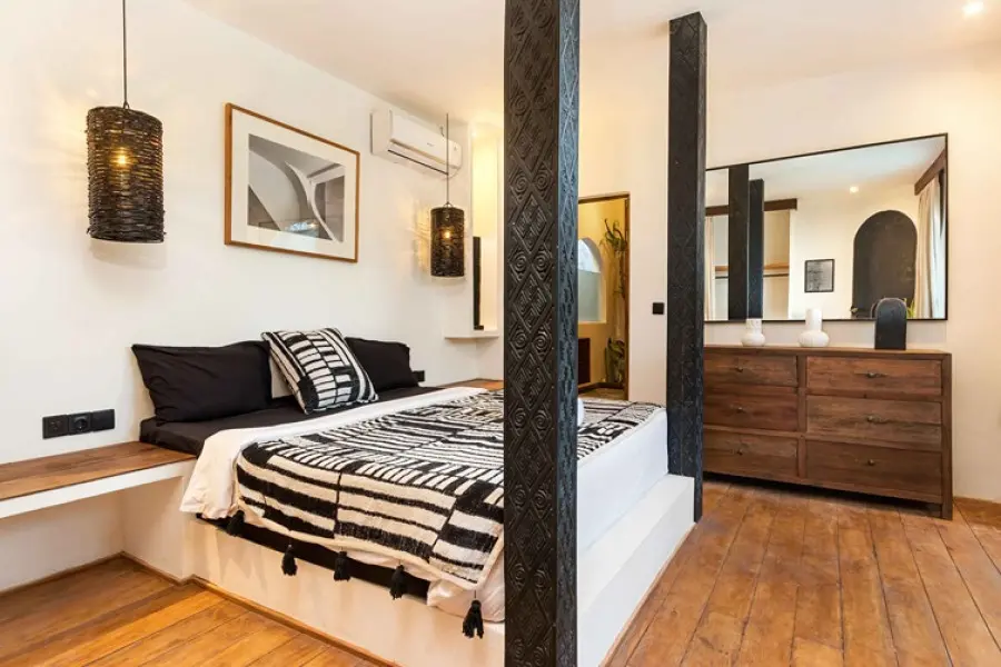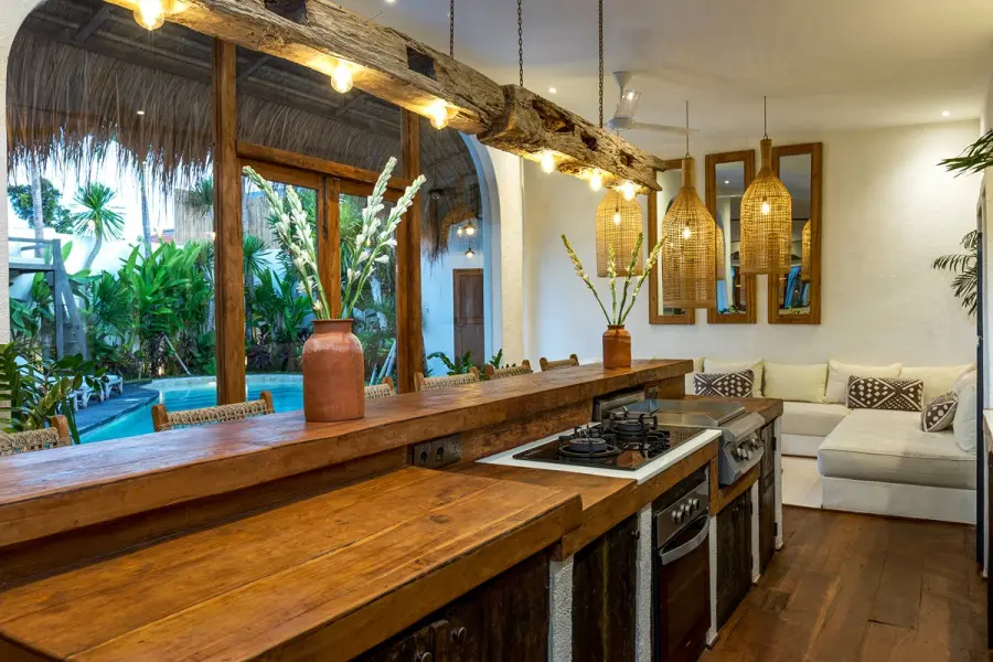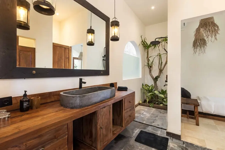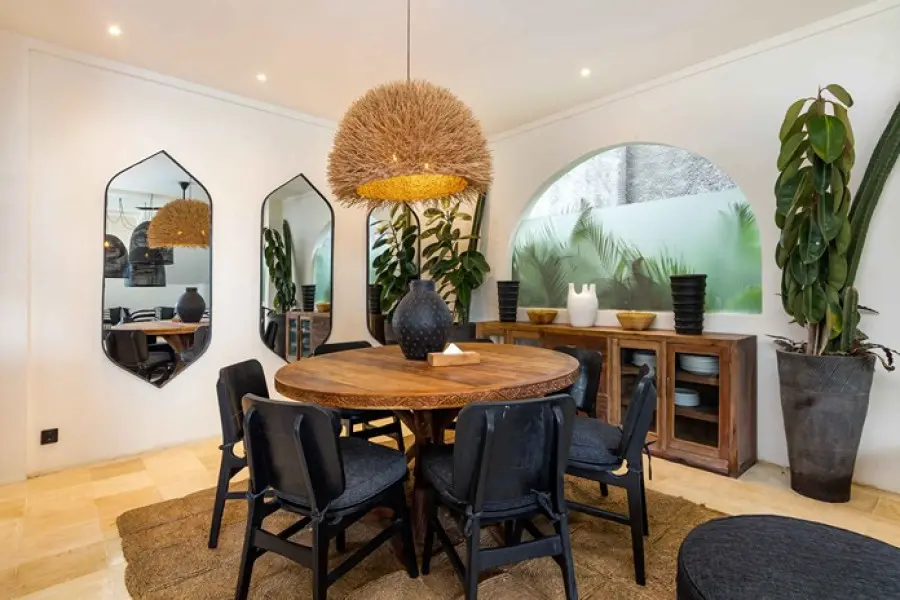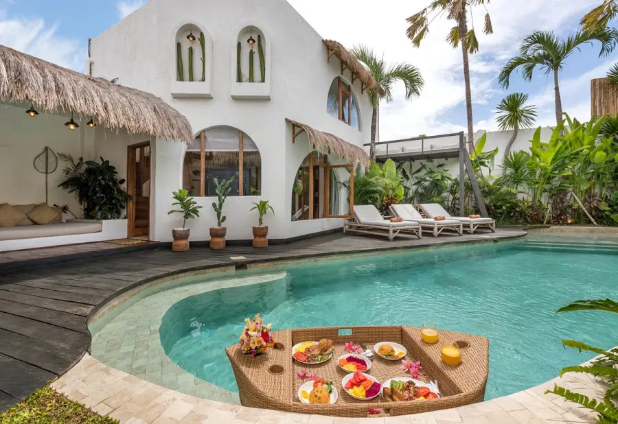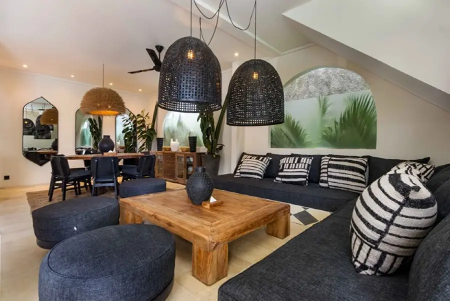 About Villas Welcome to our beautiful combination of two chic villas, located just 15 meters apart in the heart of Kerobokan, Bali! With a total of 7 bedrooms, featuring spacious layouts and thoughtfully crafted interiors, these villas are perfect for families and groups of friends seeking a stylish escape. The Indoor Areas Each villa features beautifully designed living spaces that blend comfort and elegance. The open-plan layout connects the living areas with fully equipped kitchens, offering the perfect setting for socializing or enjoying a relaxed meal. Guests can either cook their own meals or request the service of a private chef to prepare breakfast, lunch, and dinner (at an additional cost). Whether you’re in the mood for lively conversations or unwinding in tranquility, the bright and cozy interiors cater to every need. The Outdoor Areas Step outside into serene outdoor areas designed for relaxation and leisure. Each villa offers a refreshing swimming pool surrounded by comfortable seating, ideal for sunbathing or enjoying the stunning surroundings. From the expansive 12-meter pool in one villa to the cozy outdoor setup in the other, these spaces are perfect for basking in the tropical atmosphere. You can even take in the beautiful sunsets from a dedicated deck area. The Bedrooms The villas offer beautifully appointed ensuite bedrooms, each designed for privacy and charm. In the first villa, there are four bedrooms in total: three are ensuite, and one is a small extra room with a single bed, perfect for accommodating an additional guest. In the second villa, there are three ensuite bedrooms, plus a fourth bedroom located on a mezzanine level above one of the main bedrooms. This mezzanine room adds a distinct and memorable feature to the villa. Each bedroom offers a spacious closet and a cozy ambiance, ensuring maximum comfort for guests. Our Services Throughout your stay, our dedicated staff is committed to ensuring your utmost comfort. Enjoy our complimentary daily housekeeping services and the convenience of assistance with any requests you may have. Our villas are baby friendly! Wooden baby cot with mosquito net, baby chair, babysitter, pool fence are available for hire. We also have airport transfer services, breakfast, in-villa chef, in-villa massage and many more to complete your Bali experience!